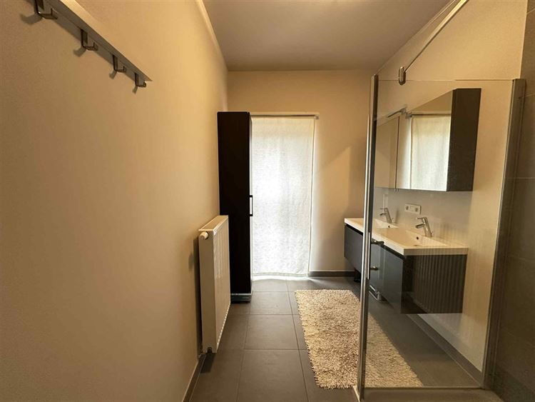 De stijlvolle badkamer is uitgerust met een ruime inloopdouche en voor extra gemak is er een autostaanplaats inbegrepen.