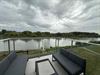Vanuit zowel de leefruimte als de keuken geniet je van een schitterend panoramisch zicht op het water.