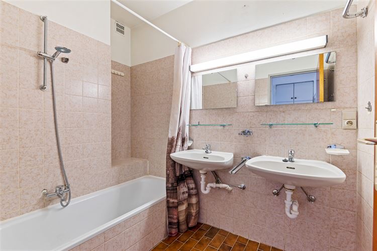 De badkamer is voorzien van twee lavabo's en een bad met douchestang. Er zijn twee volwaardige slaapkamers, elk met ruimte voor een dubbel bed en grote raampartijen die zorgen voor aangename lichtinval. Via één van de slaapkamers bereik je het zonnige terras van 5,5 m² met een extra buitenberging.