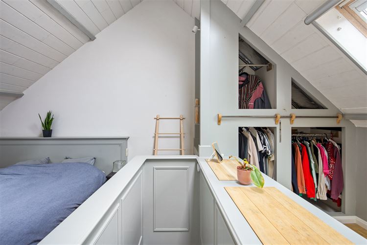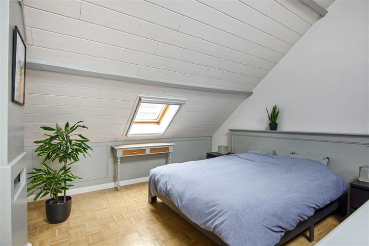 Op de eerste verdieping vind je een ruime badkamer met tweede toilet, badkamermeubel en ligbad met douche, en een eerste slaapkamer met toegang tot het vergunde dakterras. Dankzij de zuid-oostoriëntatie en het open zicht is dit de ideale plek om buiten te genieten in de zon.