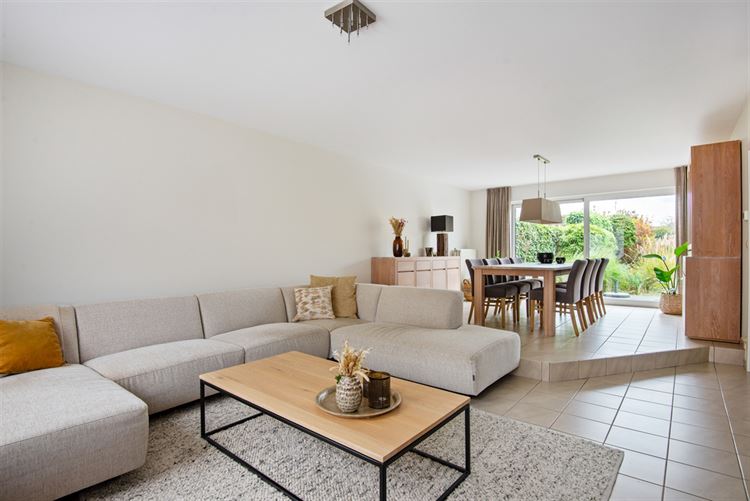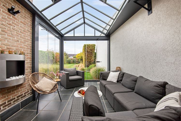 Achteraan geniet je in de veranda van extra leefruimte met een fraai uitzicht op de goed onderhouden tuin, ideaal om te ontspannen of gezellig te tafelen met familie en vrienden.