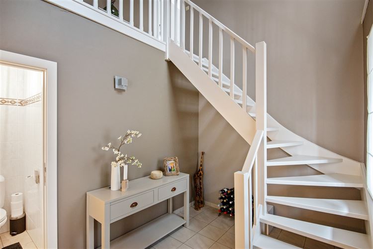 Vanaf het moment dat je binnenkomt via de vernieuwde voordeur (2024) word je verwelkomd door een lichte inkomhal met een open doorkijk naar de eerste verdieping, een echte eyecatcher die meteen een gevoel van ruimte creëert.