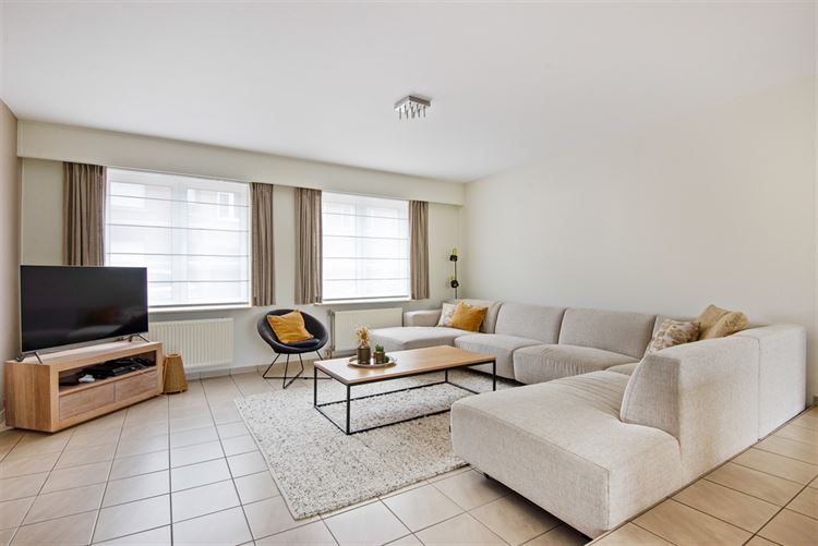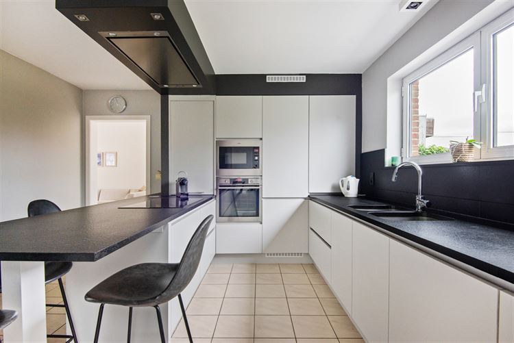 De gezellige woonkamer van 38 m² biedt plaats aan een ruime zithoek en eethoek en vormt samen met de volledig ingebouwde, recent vernieuwde keuken het hart van de woning.