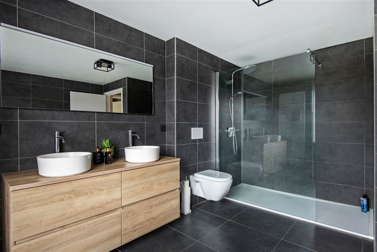 Op de eerste verdieping vind je drie uitzonderlijk grote slaapkamers, elk meer dan 20 m² groot. Eén kamer kan zelfs makkelijk opgesplitst worden in twee aparte ruimtes, perfect voor een groot gezin of wie extra plaats nodig heeft voor hobby of bureau.