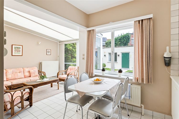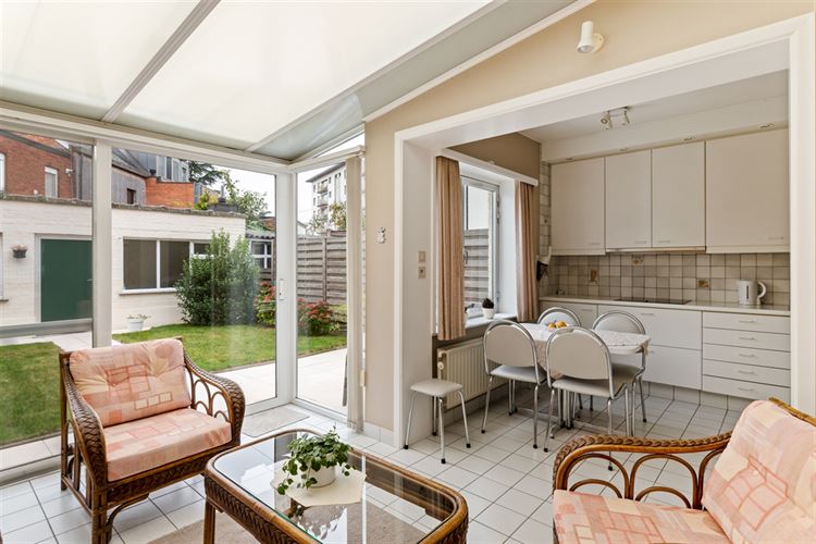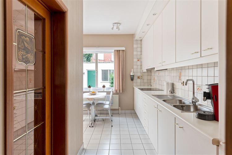 Aansluitend bevindt zich de goed onderhouden keuken, die samen met de veranda één licht en open geheel vormt. Dankzij de veranda geniet je van veel natuurlijk licht en een mooi zicht op de tuin.