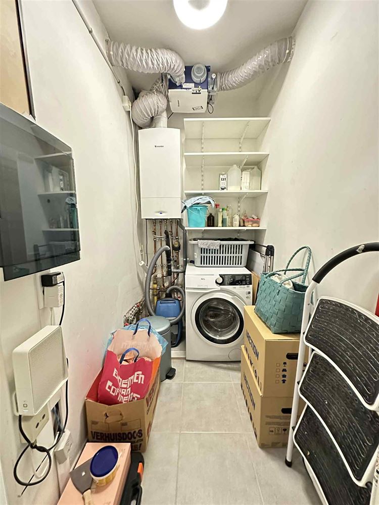 De ruime slaapkamer is volledig ingericht met een grote kleerkast, terwijl de open, volledig ingebouwde keuken perfect aansluit bij de gezellige leefruimte. De praktische berging is voorzien van aansluitingen voor wasmachine en droogkast. Dankzij het ventilatiesysteem geniet je hier bovendien altijd van een gezond binnenklimaat.